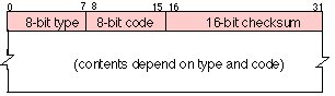 The format of an ICMP message is shown above. The 8-bit type code identifies the types of message. This is followed by at least the first 28 bytes of the packet that resulted in generation of the error message (i.e. the network-layer header and first 8 bytes of transport header). This payload is, for instance used by a sender that receives the ICMP message to perform Path MTU Discovery so that it may determine IP destination address of the packet that resulted in the error. Longer payloads are also encouraged (which can help better identify the reason why the ICMP message was generated and which program generated the original packet).