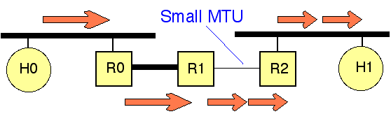 The network layer then has to arrange to cut packets up into smaller fragments whenever a router encounters a link with an MTU smaller than the received IP packet size. All the fragments of an IP packet carry the same ID in the IP packet header (allowing the final receiver to reassemble the fragmented parts into the original PDU). This is called "IP fragmentation" or "IP segmentation". The problem is, this offloads a lot of work on to routers, and in the worst case, can also result in packets being segmented by several IP routers one after another, resulting in very peculiar fragmentation.