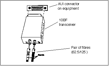 Connection of transceiver on equipment to a 10BF Ethernet network