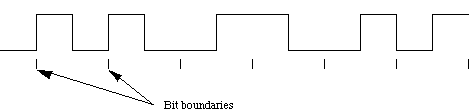 Note that signal transitions do not always occur at the 'bit boundaries' (the division between one bit and another), but that there is always a transition at the centre of each bit.The encoding may be alternatively viewed as a phase encoding where each bit is encoded by a postive 90 degree phase transition, or a negative 90 degree phase transition. The Manchester code is therefore sometimes also known as a Biphase Code.