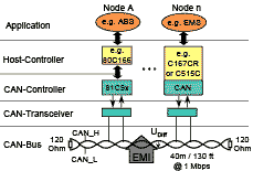 The CAN protocol uses Non-Return-to-Zero or NRZ bit coding. This means that the signal is constant for one whole bit time (baud) and only one time segment is needed to represent one bit. The two bus conductors are driven differentially. The signal levels are shifted, resulting in a waveform that differs to that of EIA-485.