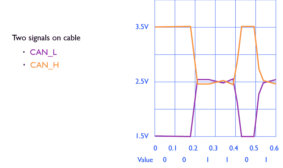 In more detail, CAN singalling represents a 1 and 0 in the following way using 3 signal levels: