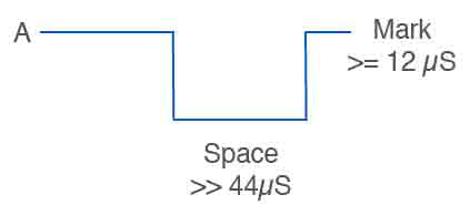 In DMX, the break (at the sender) is longer than a minimum duration of 92 µS of continuous low signal. This is followed by a 12 µS high level (Mark After Break) A longer duration provides more reliable detection of the start of a frame when there could potentially be a bit error.