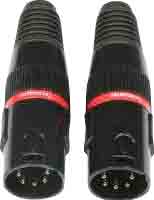 Pinout of 3-pin and 5-pin XLR connectors (pins 4,5 are usually unconnected - but can be connected straight through 4 to 4 and 5 to 5).