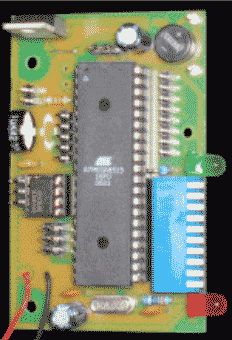 AVR-based DMX receiver showing the DIP switches (on the left shown highlighed in blue) used for configuration.