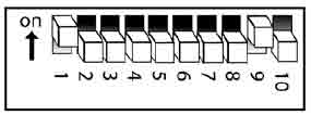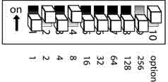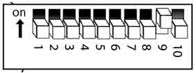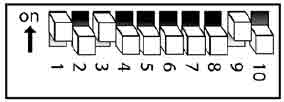 DIP switch setting for a base address of 10 (2+8=10). The least significant bit is