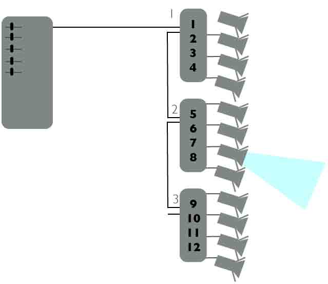 A DMX receiver that requires one or more channels of control data utilises data in the dmx frame, staring at the slot indicated by the base address. For example, a receiver requiring 7 bytes of data that has a base address of 100, would read data from the set of slots: 100,101,102, 103, 104, 105 and 106. The next consecutive DMX receiver could be configured to use a base address of 107.
