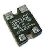 A Crydom D2410-10 Solid State Relay available in both zero-voltage or instantaenous/random switched versions. The mains load is switched on terminals 1,2 and the control is applied to terminals 3 and 4.