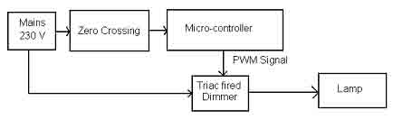 In this design a zero crossing unit will be used to detect when duty cycle from a mains supply crosses zero and switch the lamp on.
