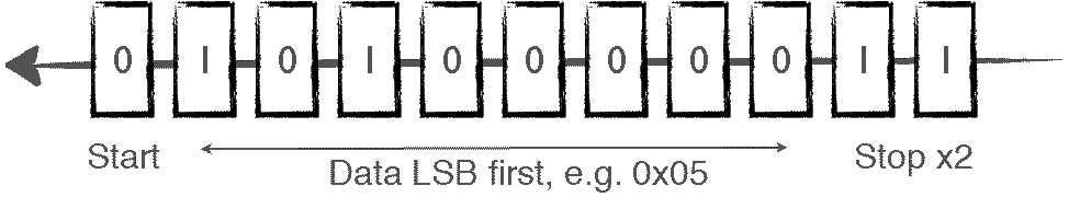 Figure showing transmission of the bauds forming a character (0x05) using asynchronous communication